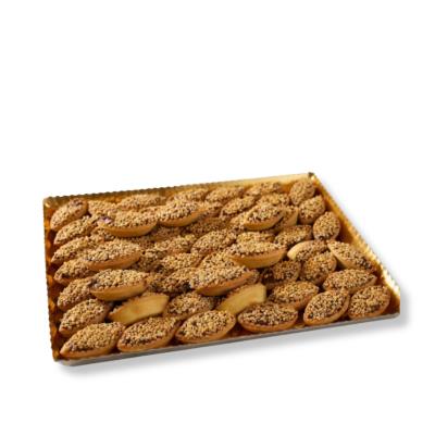 Barchette Hazelnut Nocciola 1.5kg tray, Italian pastry barchette, meaning “little boats,” are charming boat-shaped treats crafted from delicate, buttery pasta frolla (shortcrust pastry) with a crisp yet tender bite. Our barchette are generously filled with smooth, velvety gianduja chocolate—a luxurious blend of fine cocoa and roasted hazelnuts—creating a rich, indulgent center that melts effortlessly on the palate. Each piece is finished with a scattering of cracked hazelnuts on top, adding a delightful crunch and enhancing the deep, nutty flavour.