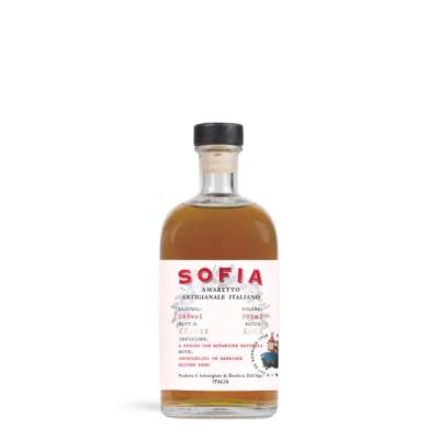 Amaretto Sofia is produced with the cold infusion in wheat based alcohol of Sicilian bitter almonds, sweet Sicilian almonds, Calabrian orange skin, Grapefruit skin, sugar and freshwater. Then the product is aged for at least 8 months in french Barriques. it is 100% gluten free and Vegan.